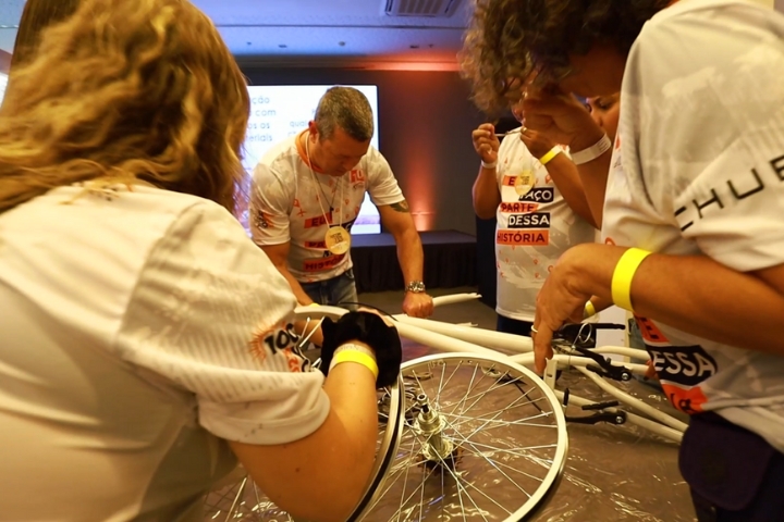 O Team Bike é um programa de team building voltado para a construção de bicicletas que serão doadas para uma instituição de caridade.
